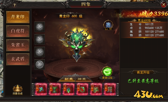 升级系统:四象升级材料可通过活动兑换、击杀龙域boss和小怪获得,四象系统与游戏中后期诸多系统有关联,属于必须培养的系统。